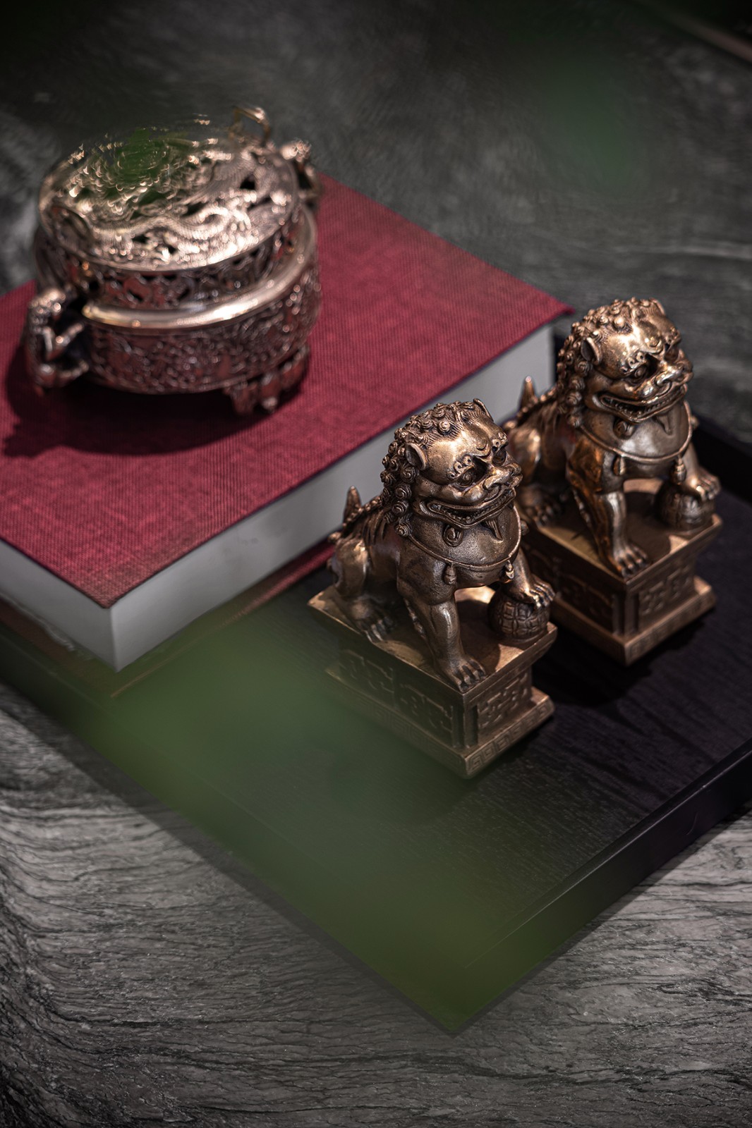 现代化的中式元素随处可见,就连小巧的摆件都充满着趣味,曲正方圆、各具形态,迎合大部分人的审美情趣,在舒雅从容中又显得格外玲珑,细节上探索当代诗意的生活方式。